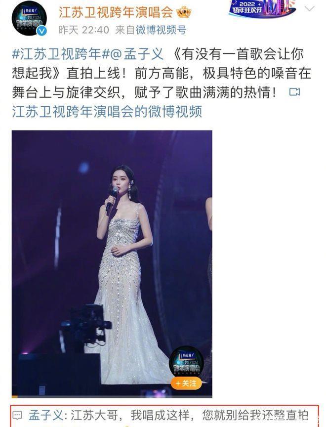 后续更是简便,江苏卫视一出艺东谈主的个东谈主直拍,孟子义现身到官博挑剔区,暗暗卖了个惨。