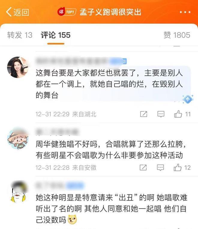 直到孟子义突兀的跑调,一出来各人的眷注点完全被此眩惑过来,粉丝吵架也无东谈主眷注了,果真一举三得。